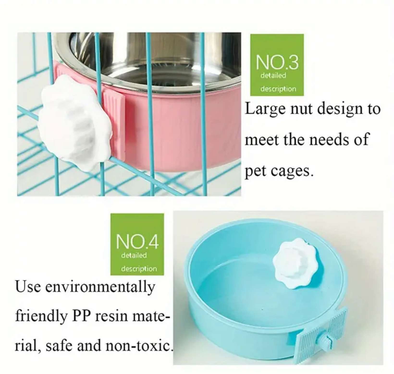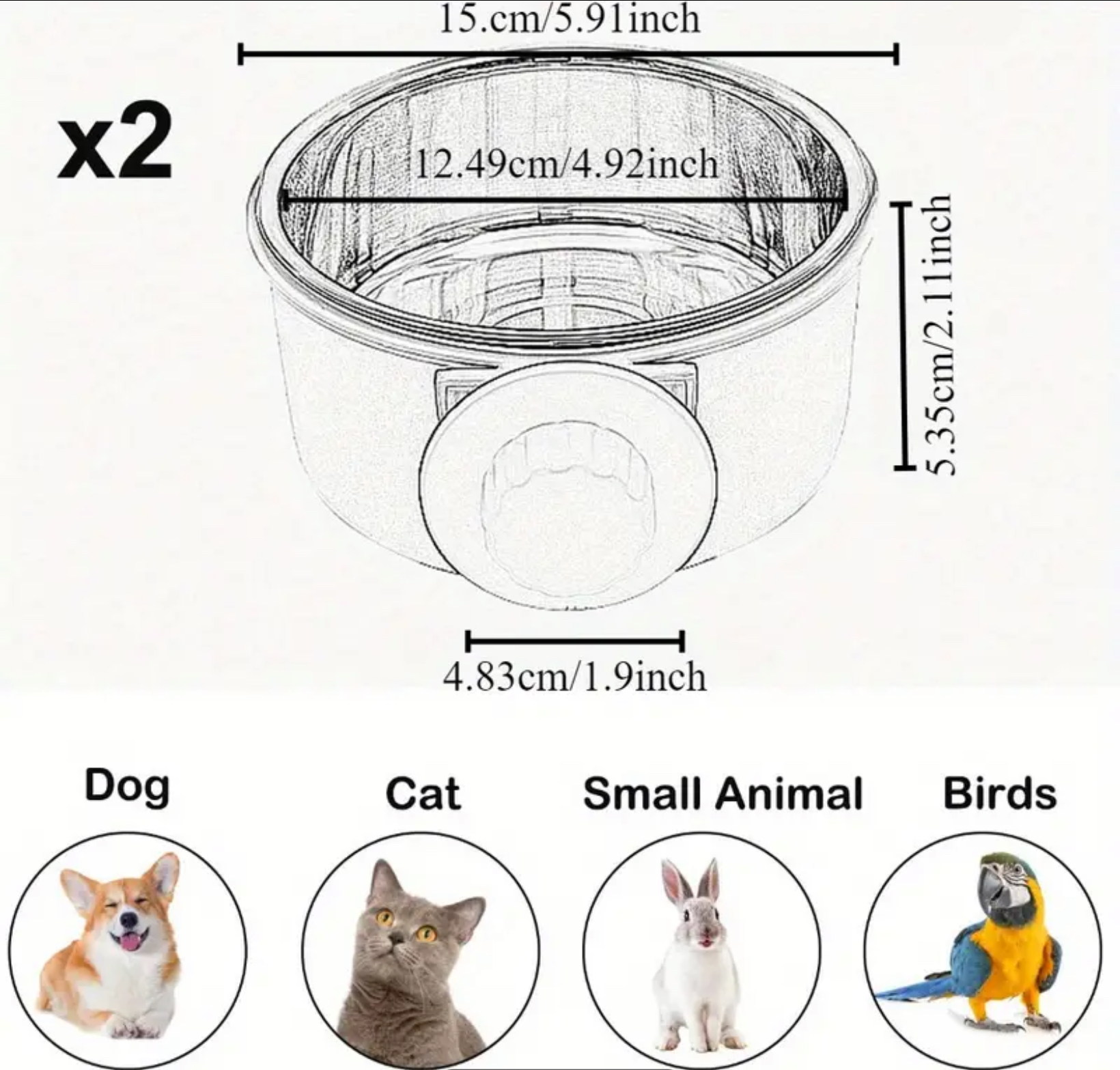 2pcs Stainless Steel Hanging Pet Feeding Bowl, Pet Cage Feeding Bowl, Detachable Pet Nest Hanging Water Feeding Bowl, Easy To Install, High Quality Material, Non-slip and Easy To Clean, Suitable for Puppies, Cats, Rabbits, Birds