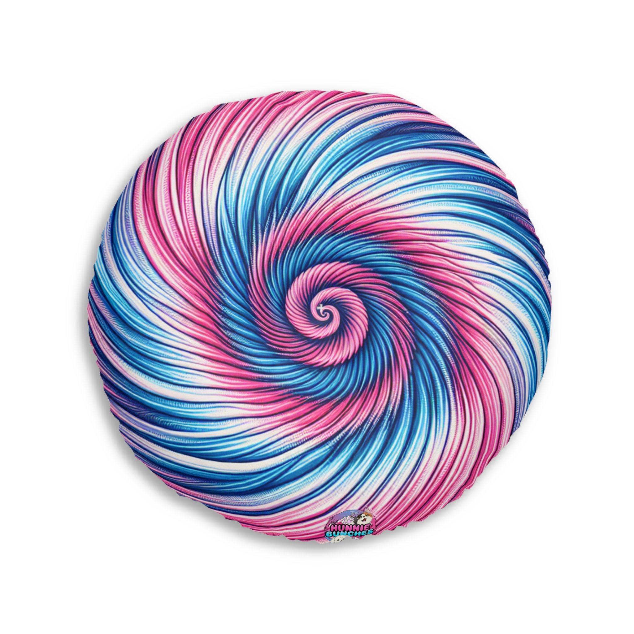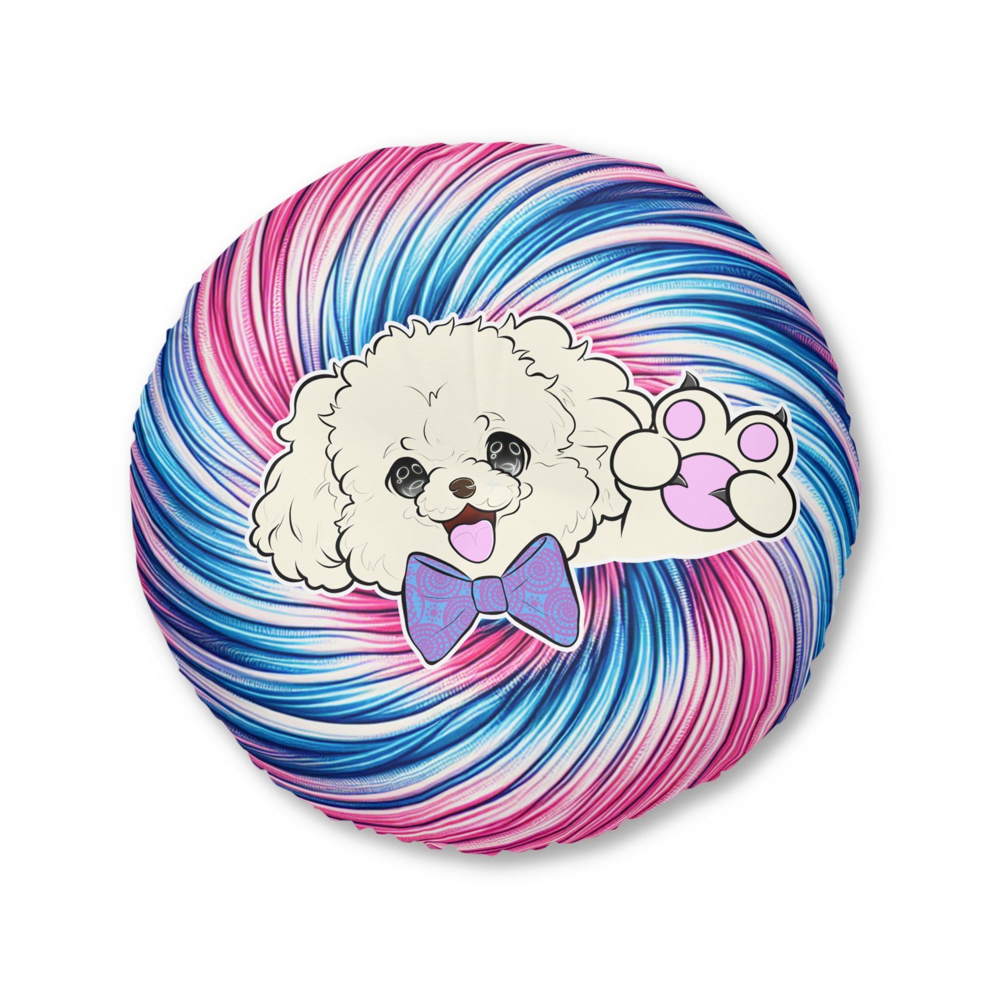 Give your furry friend the perfect cozy spot with a round tufted pet pillow from Hunnie Bunches Pet Apparel!